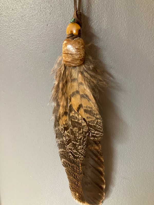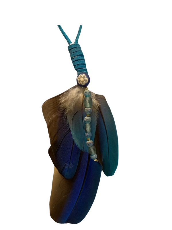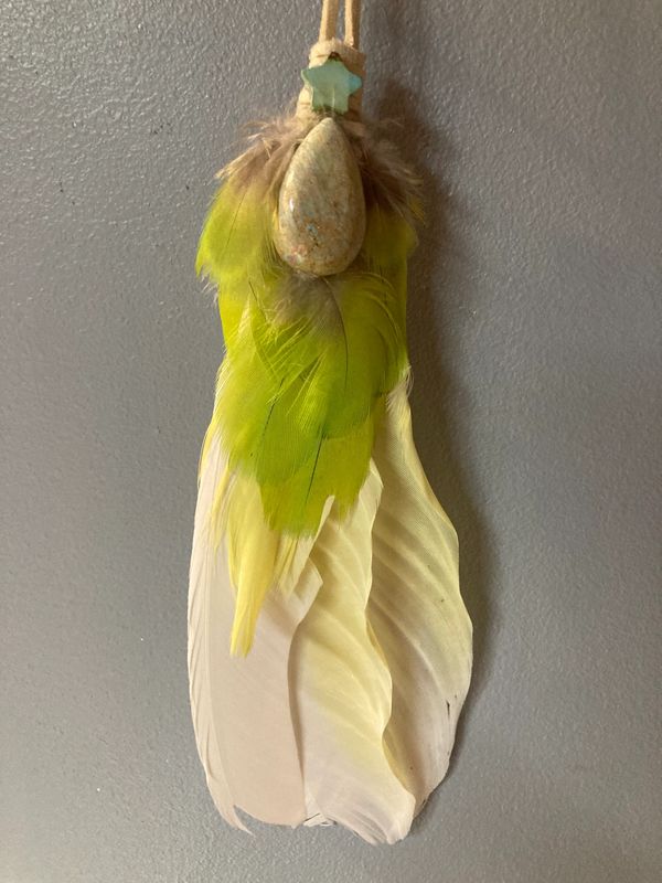 All my feather art is made from turkey feathers, allowed hunting bird feathers or from my own chickens. I raise chickens for their eggs, for their delightful colored feathers, and as my emotional support friends (yes, they make great farm friends). I custom design the feather piece to match the spiritual requests or needs of my clients.
